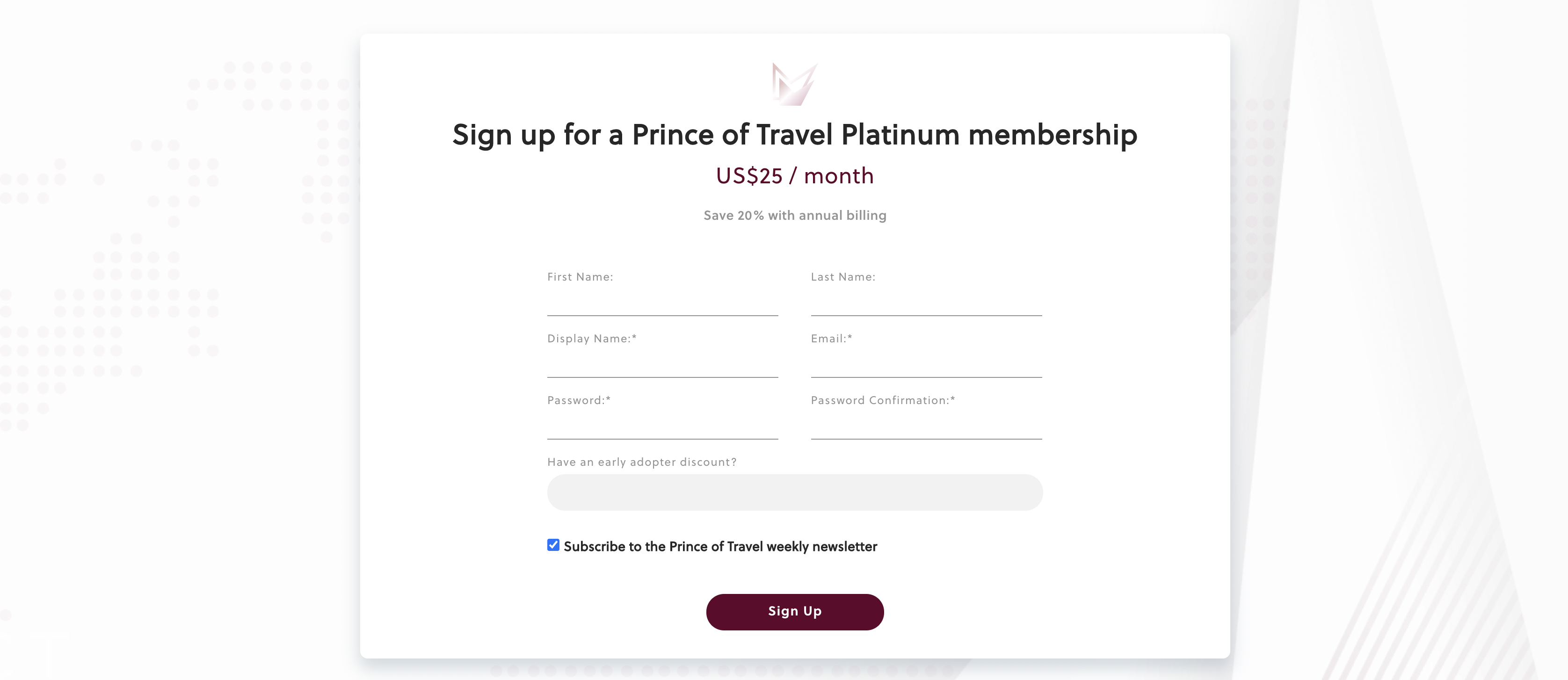 If you’re not ready to start with a paid membership just yet, you can also create a free account to instantly enhance your Prince of Travel experience.