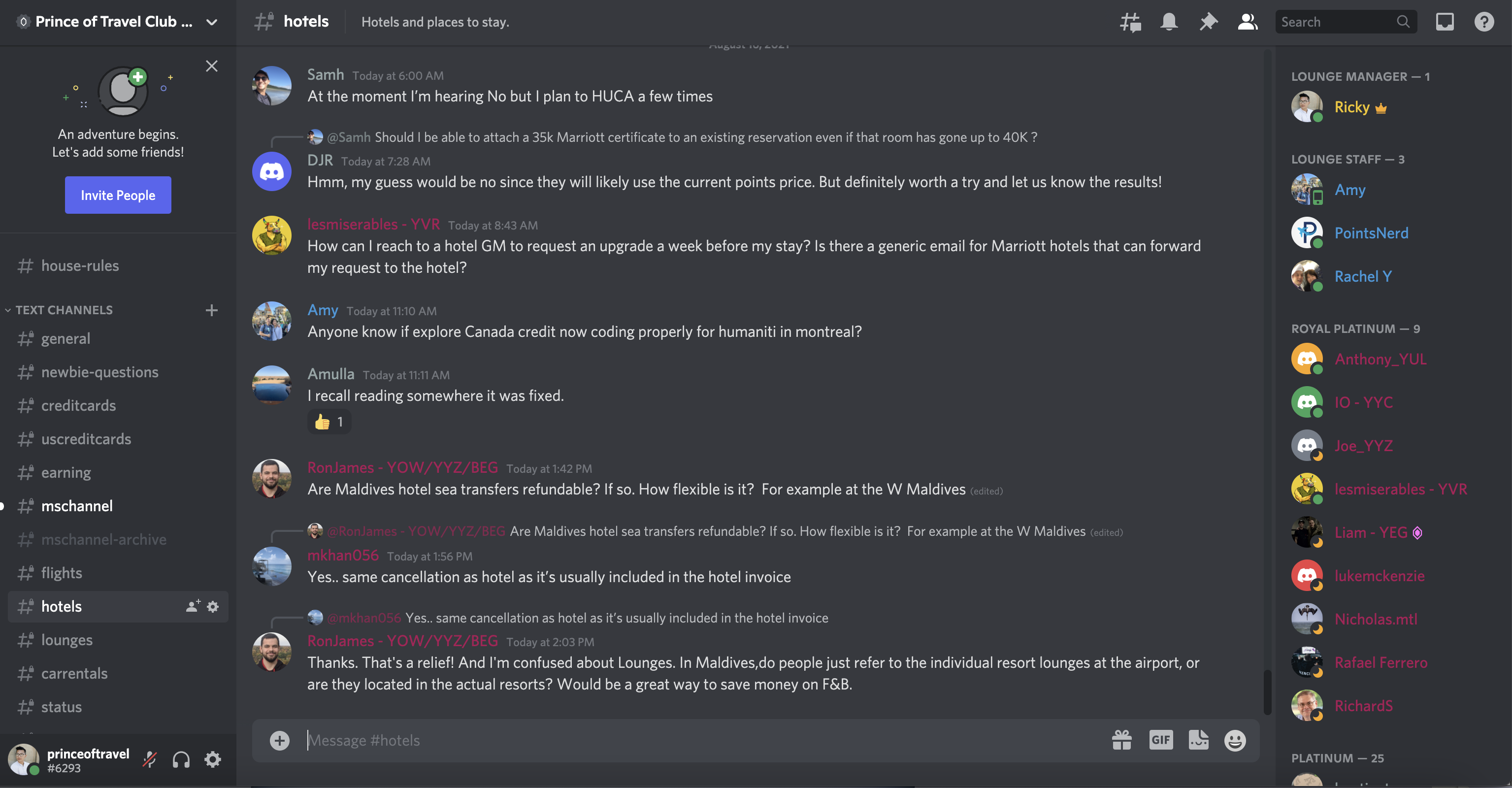 First, we have the Prince of Travel Club Lounge, the only official chat group for Prince of Travel where you’ll get to chat with myself, the Prince of Travel team, and the rest of the membership community. The chat server is hosted on Discord, with dedicated private channels to chat about anything and everything.