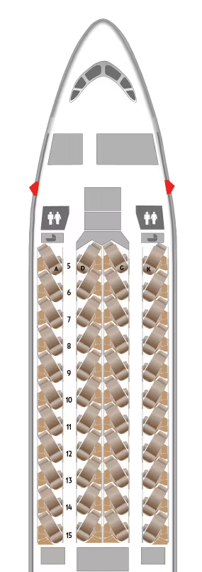 When booking, you may see which aircraft type will be operating the flight and access the seat map, but note there might be last-minute aircraft changes.