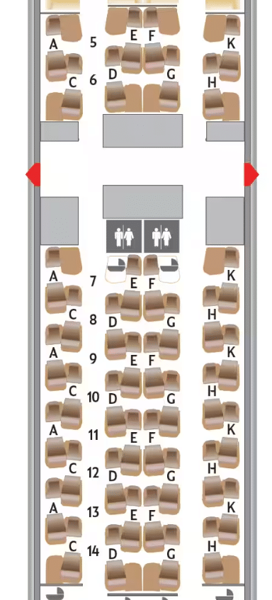 With the uniform configuration, solo flyers should take any seat on either window rows. Couples may want to take the middle seats, but the centre partition only opens halfway.