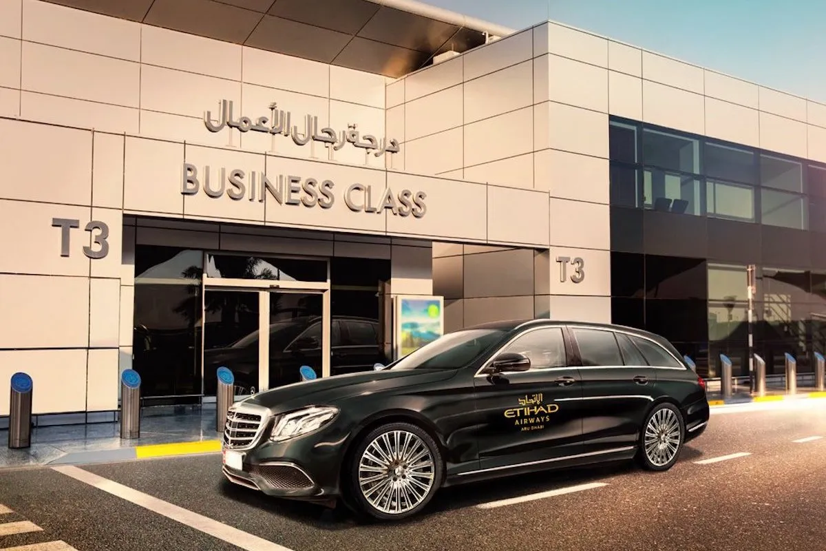 A journey on Etihad Airways business class begins with the Etihad Chauffeur, which picks passengers up to and/or from Abu Dhabi Airport in style.
