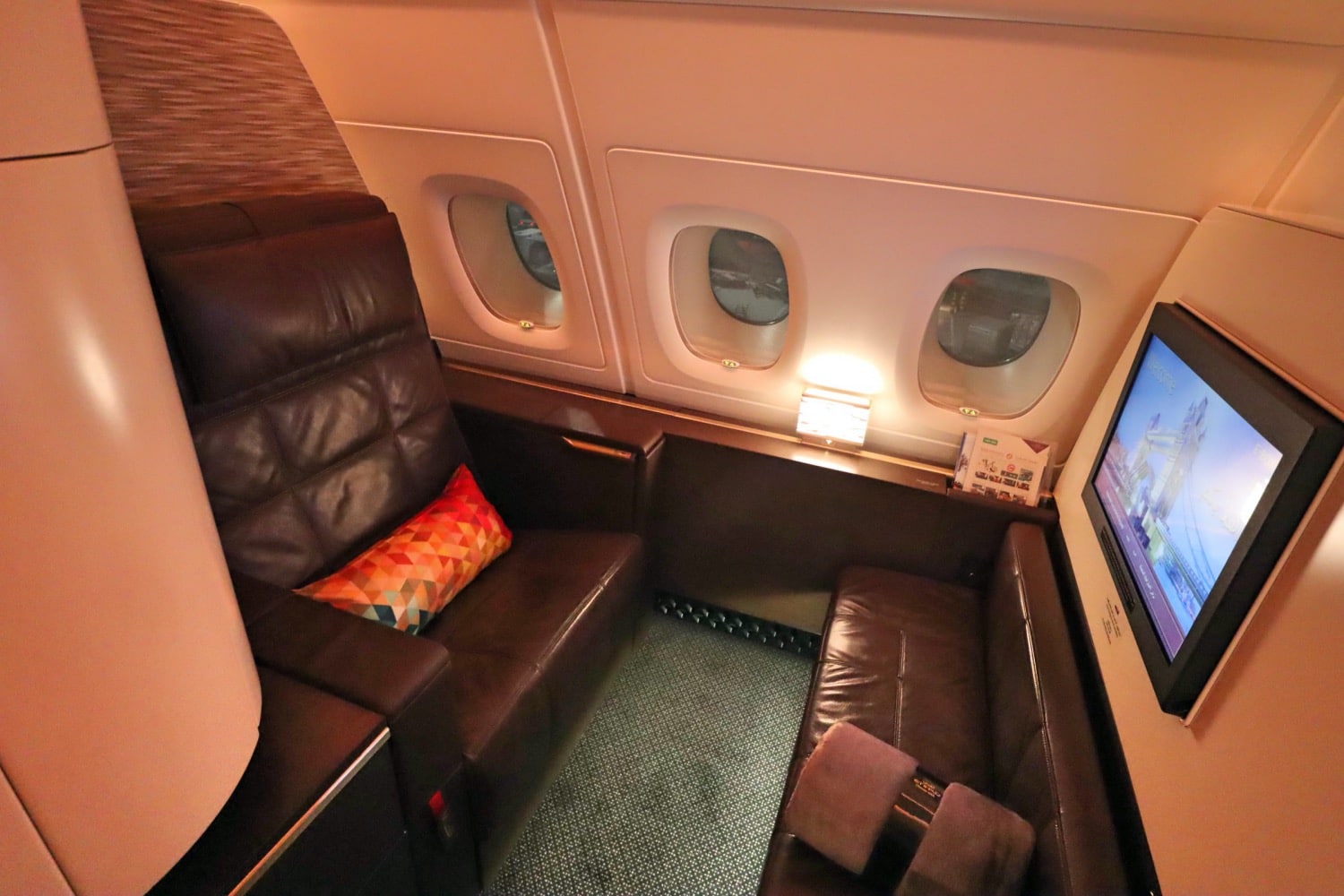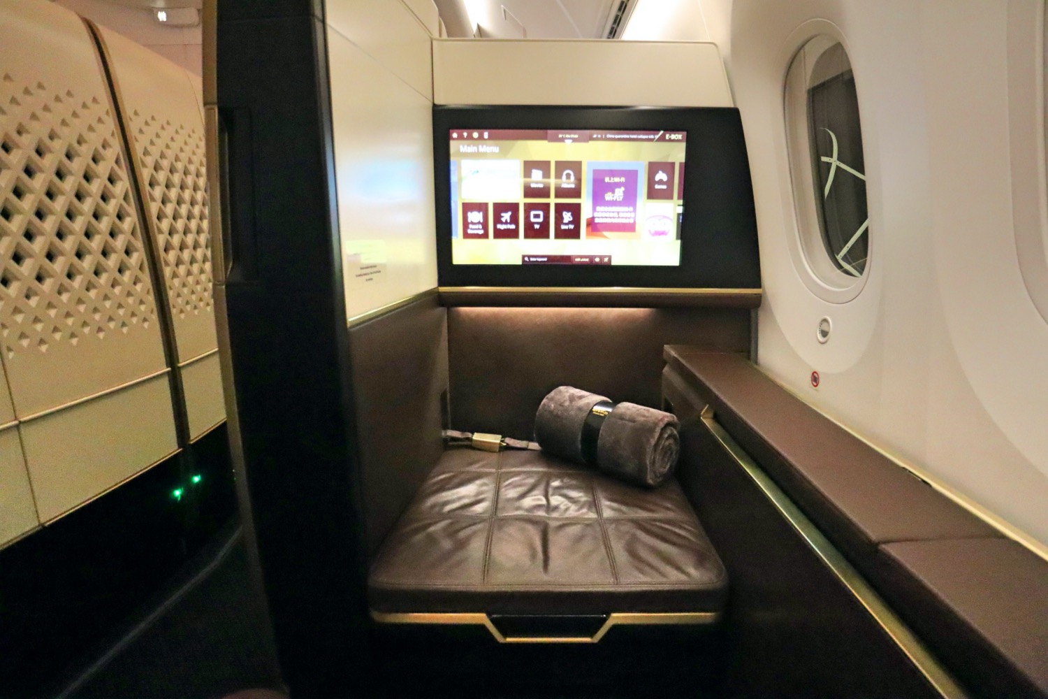 If you’re flying in the Apartment, the experience is even more exquisite. In your suite, you have a separate chair and bench, both concealed behind tall sliding doors.