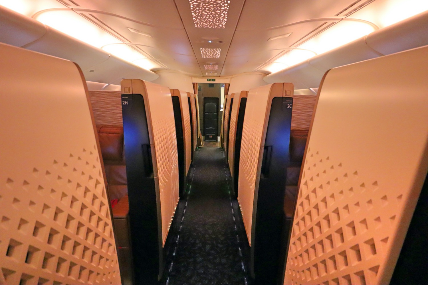 If you’re travelling with a significant other, be sure to pick seats 3A & 4A, or 3K & 4K, as the divider can be lowered and you can enjoy a pseudo double-bed in the sky from the waist up.
