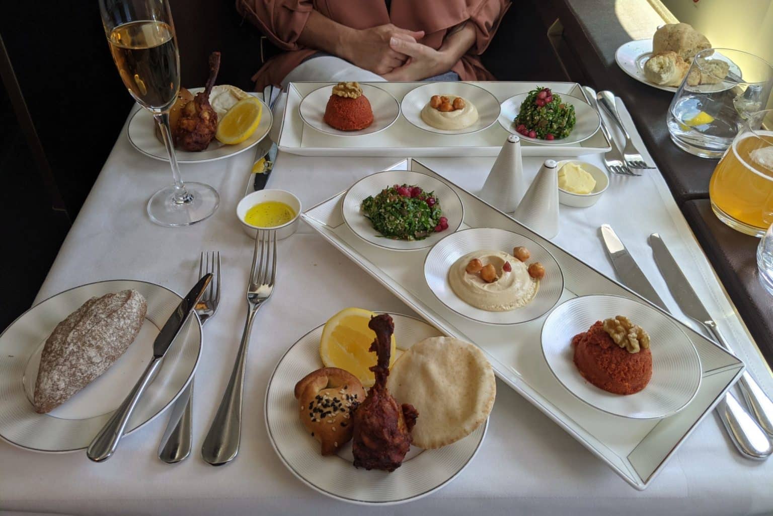 Soon after taking your seat in your suite, you’ll be treated to a glass of champagne and dates as you settle in and gasp at the vast amount of real estate at your fingertips.
