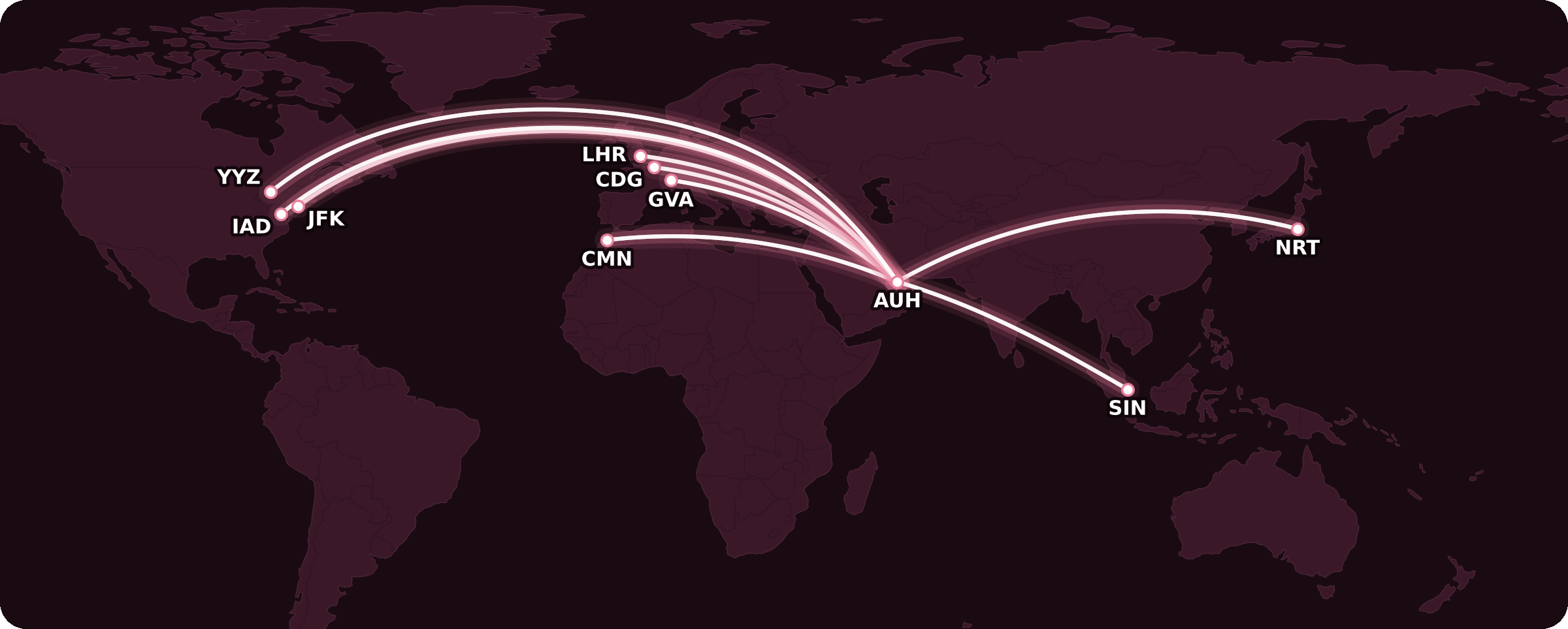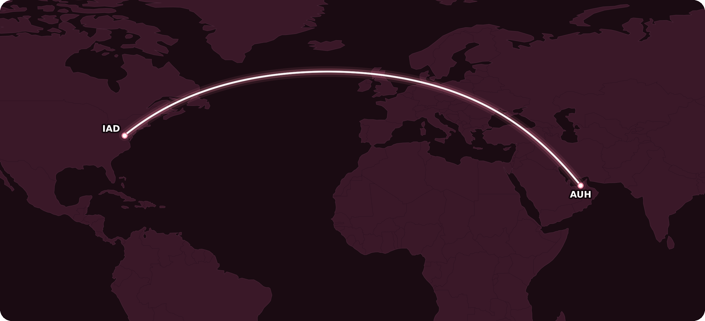 - Abu Dhabi–Toronto and Washington: 115,000 miles