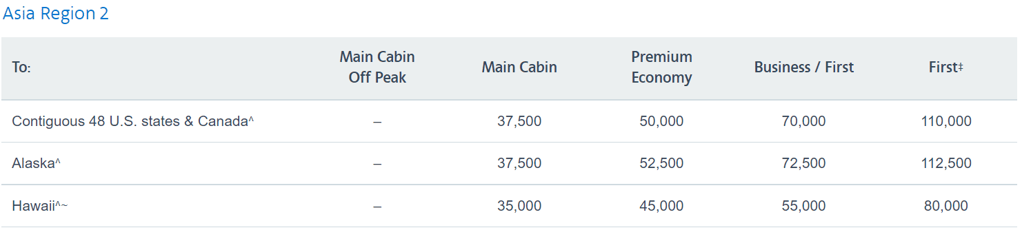 Los Angeles–Tokyo would cost 110,000 Asia Miles, while New York–Tokyo would cost 130,000 Asia Miles. Even with the occasional 10–15% transfer bonus in play, these award rates are a fair bit higher than booking via Alaska.