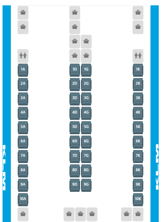 Solo travellers should pick any of the “A” or “K” seats to be closer to the window and separated from the aisle by the console.