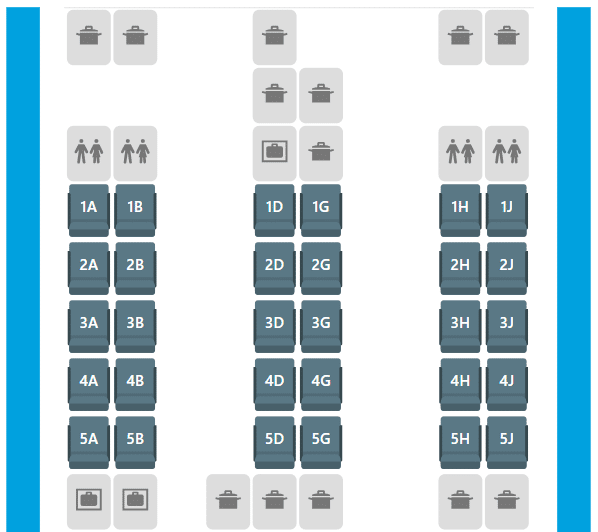 Clearly, no matter where you sit, there’s likely going to be someone beside you. Therefore, for solo travellers, you might as well pick any of the “A” or “J” seats to be seated next to the window and enjoy some privacy.