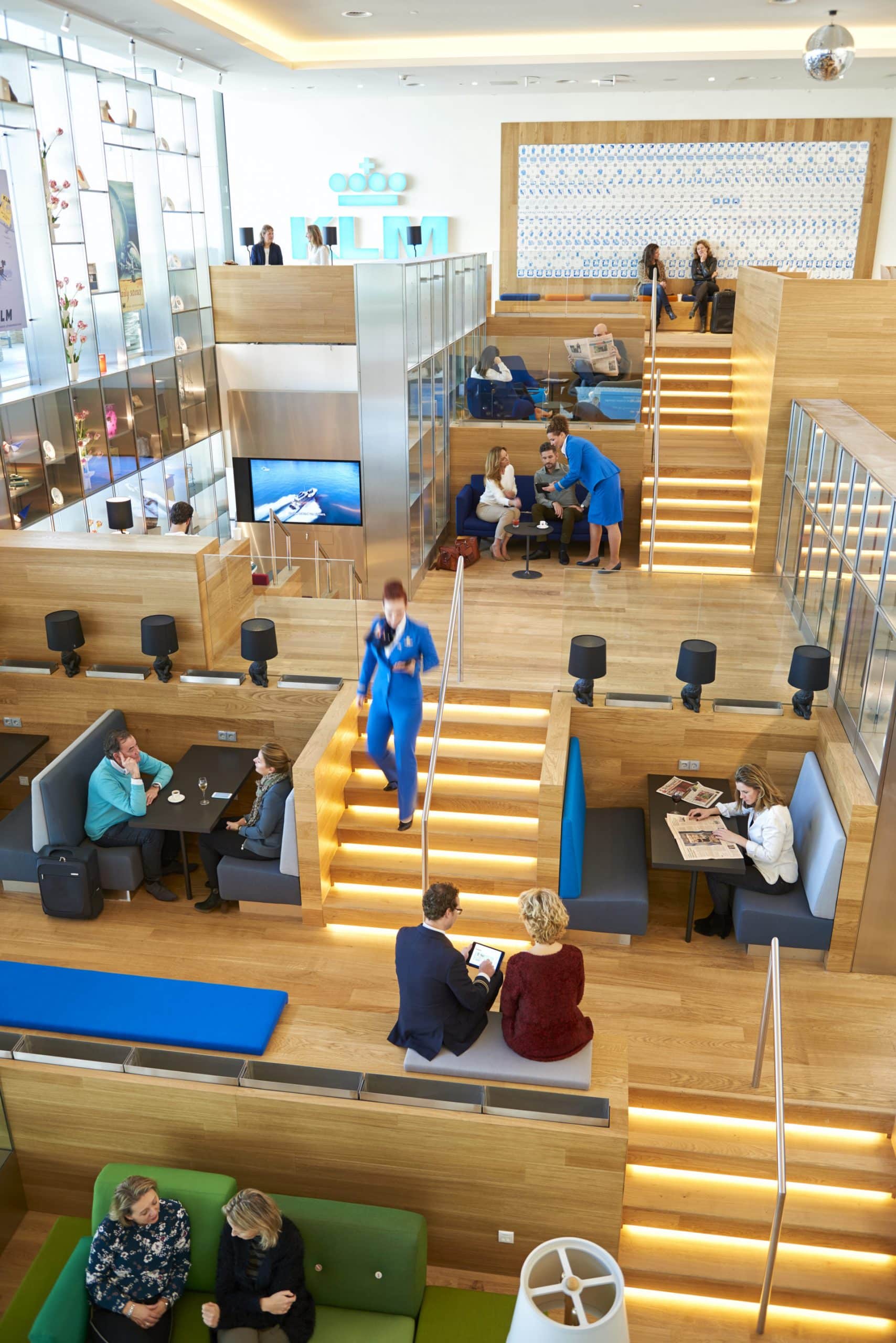 Prior to boarding, passengers flying KLM business class out of Amsterdam gain access to the KLM Crown Lounge, also known as “Lounge 52”. Right as you enter the lounge, you’ll be greeted with a display of KLM’s icon, the Dutch Delft blue houses.