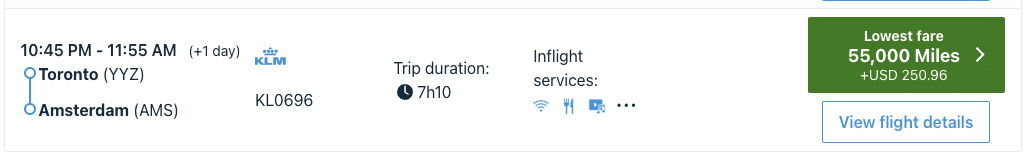 It’s important to note that Flying Blue passes on fuel surcharges or carrier-imposed surcharges. For a trans-Atlantic business class seat, you can expect to pay $300–350 (CAD) in taxes and fees per way.