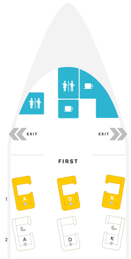 Those travelling with a companion will want to select either Seats 1D and 1K or Seats 2D and 2K, as these seats share access to an aisle.