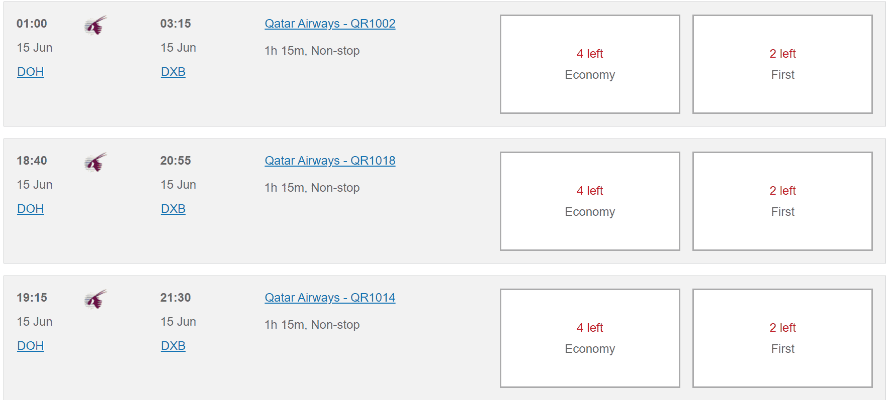 For example, a First Class flight from Doha to Dubai, which clocks in at just over an hour, prices out at only 21,000 Avios.