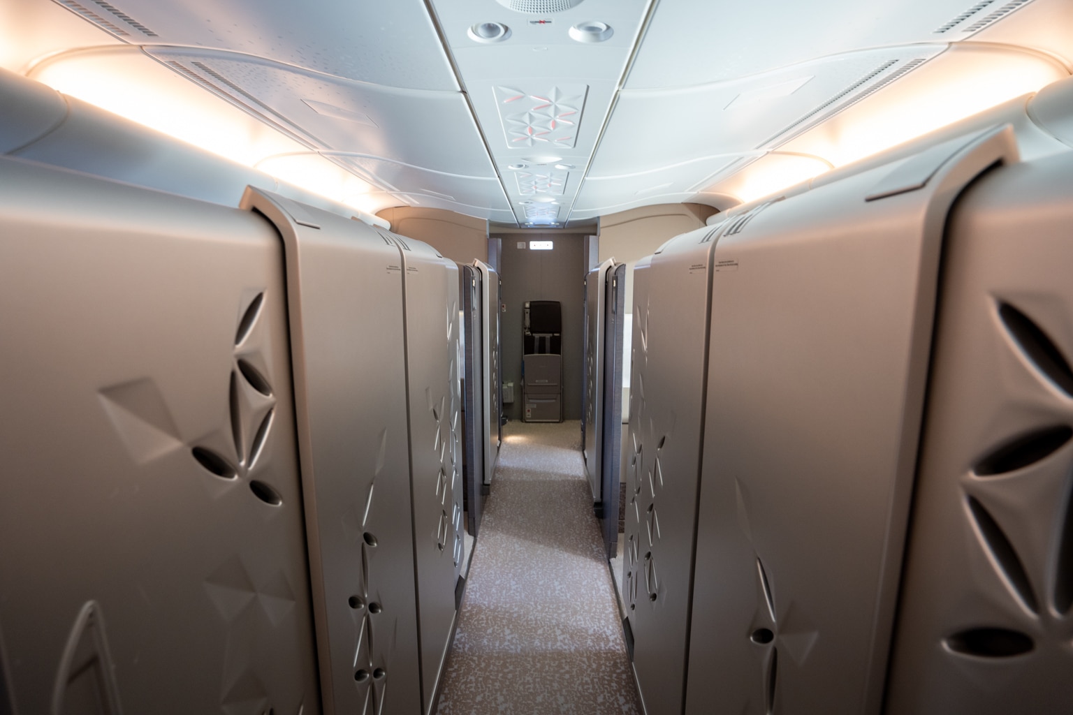 If you’re flying with a companion, you can still enjoy the experience together with a lowered partition in the middle seats. Unlike with Suites Class, there’s no double bed in the sky option here.