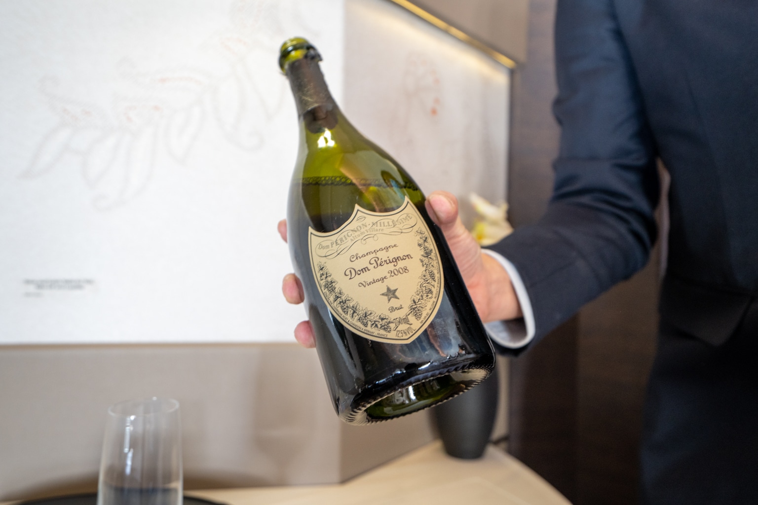 To start, you’ll be offered your choice of two high-end Champagnes (or both 😉), such as Dom Perignon 2008, Taittinger Comtes 2007, or Krug 2004.