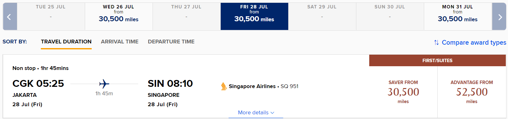 Singapore Airlines First Class Award Availability