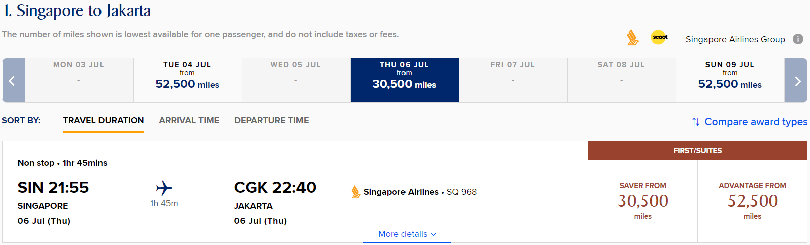 To search for award availability, you can use a tool like ExpertFlyer. Alternatively, you can easily search directly on the Singapore Airlines website.
