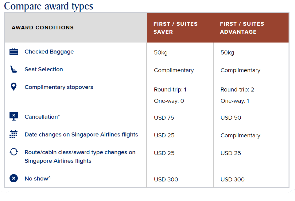 When redeeming KrisFlyer miles for an available First Class seat, you have the option of either a “Saver” or “Advantage” fare. You’ll ideally be able to find a “Saver” fare, as an “Advantage” fare costs almost double the number of miles.