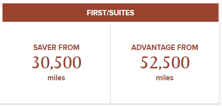 For the same routes, all First Class cabins cost the same amount of miles. It doesn’t matter if you’re flying in First Class on the Boeing 777 or in Suites Class on the Airbus A380 – the cost is the same.