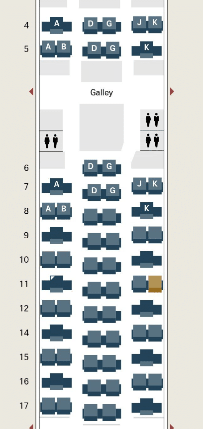 If you don’t manage to snag a throne seat on the A330 or A340, you’ll still have the right side with a column of solo seats (“K” seats). The seats nearer to the window have the console separating them from the aisle, thus offering a bit more privacy, than the seats nearer to the aisle.