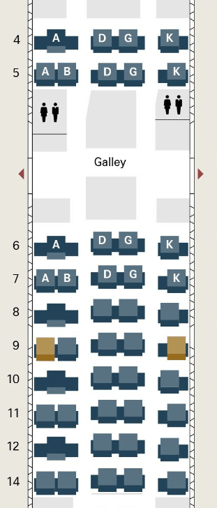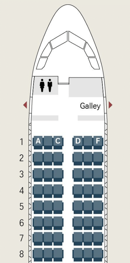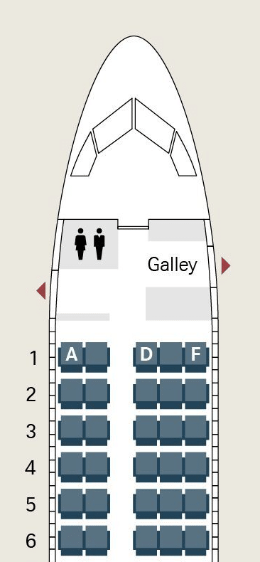 On smaller A220 aircraft, the configuration is 2-3. If you’re flying solo, you should choose one of the “A” seats on the left side, so you can have a blocked seat beside you.