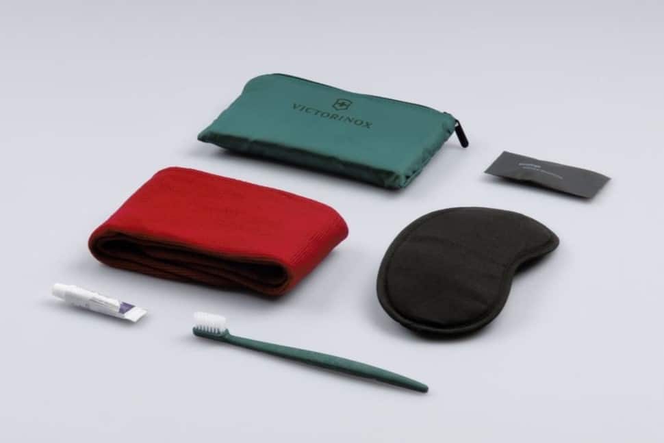 Decked in neutral colours and woodgrain finishes, the seats transform into a two-meter flat bed with a massage function, and they’re equipped with several power and USB power ports. Waiting on each seat is an amenity kit by renowned Swiss pocket knife maker Victorinox.