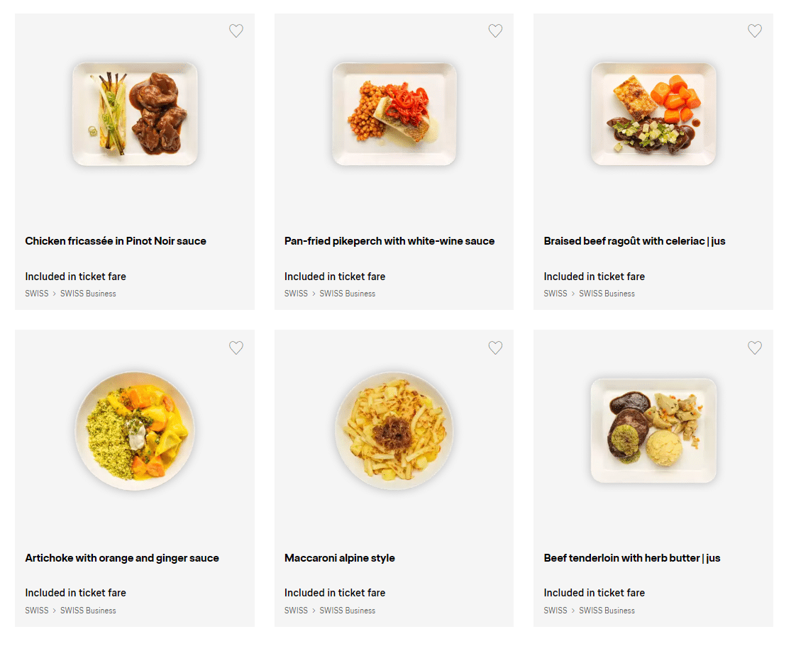 Swiss also offers a meal pre-ordering service where you can select your main meal up to 24 hours before departure. You can choose mouthwatering dishes, such as chicken fricassée in Pinot Noir sauce or sliced veal Zurich-style.