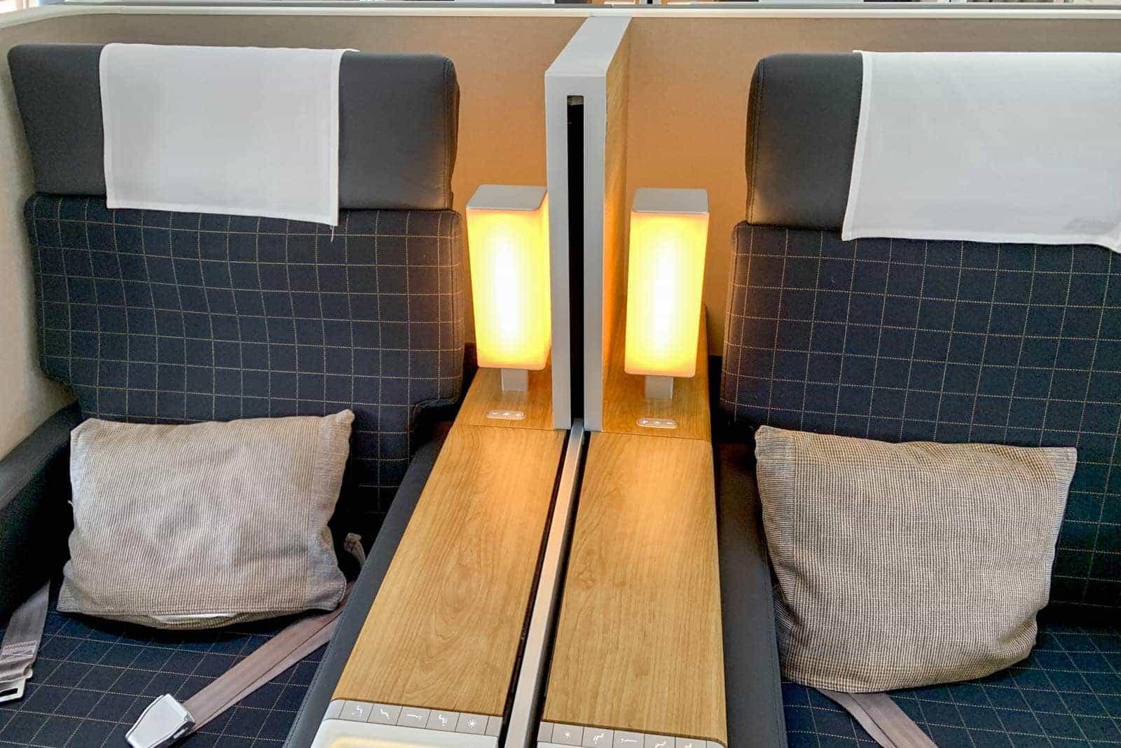 If you’re traveling Swiss First Class solo, then Seats 2A or 2K by the windows would provide the most privacy, with the window seats 1A or 1K being the next best options.