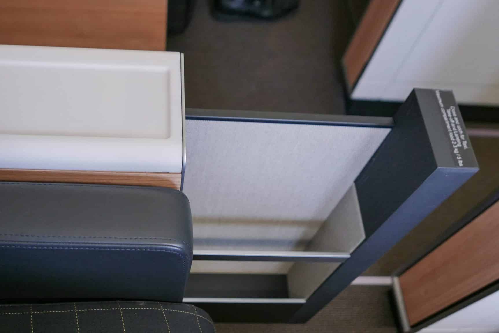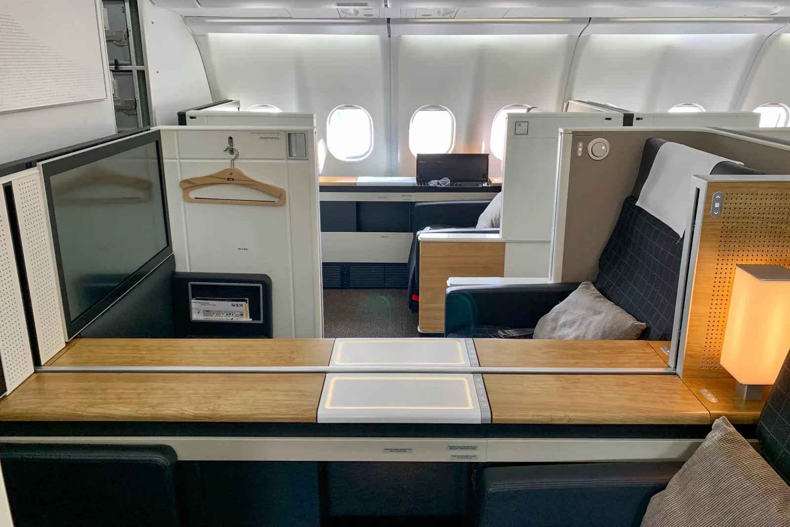 The Airbus A340 doesn’t have the same private wardrobe, although there are other places to hang your jackets. The suite also has a door that comes out to provide you with more privacy.