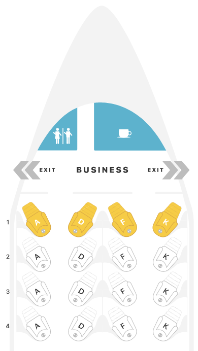 If you’re travelling by yourself, any of the window seats will provide the most amount of privacy. Seats 1A and 1K are closest to the front of the plane and are likely to have the most aisle traffic, while Seats 4A and 4K are likely to have the least amount of traffic.