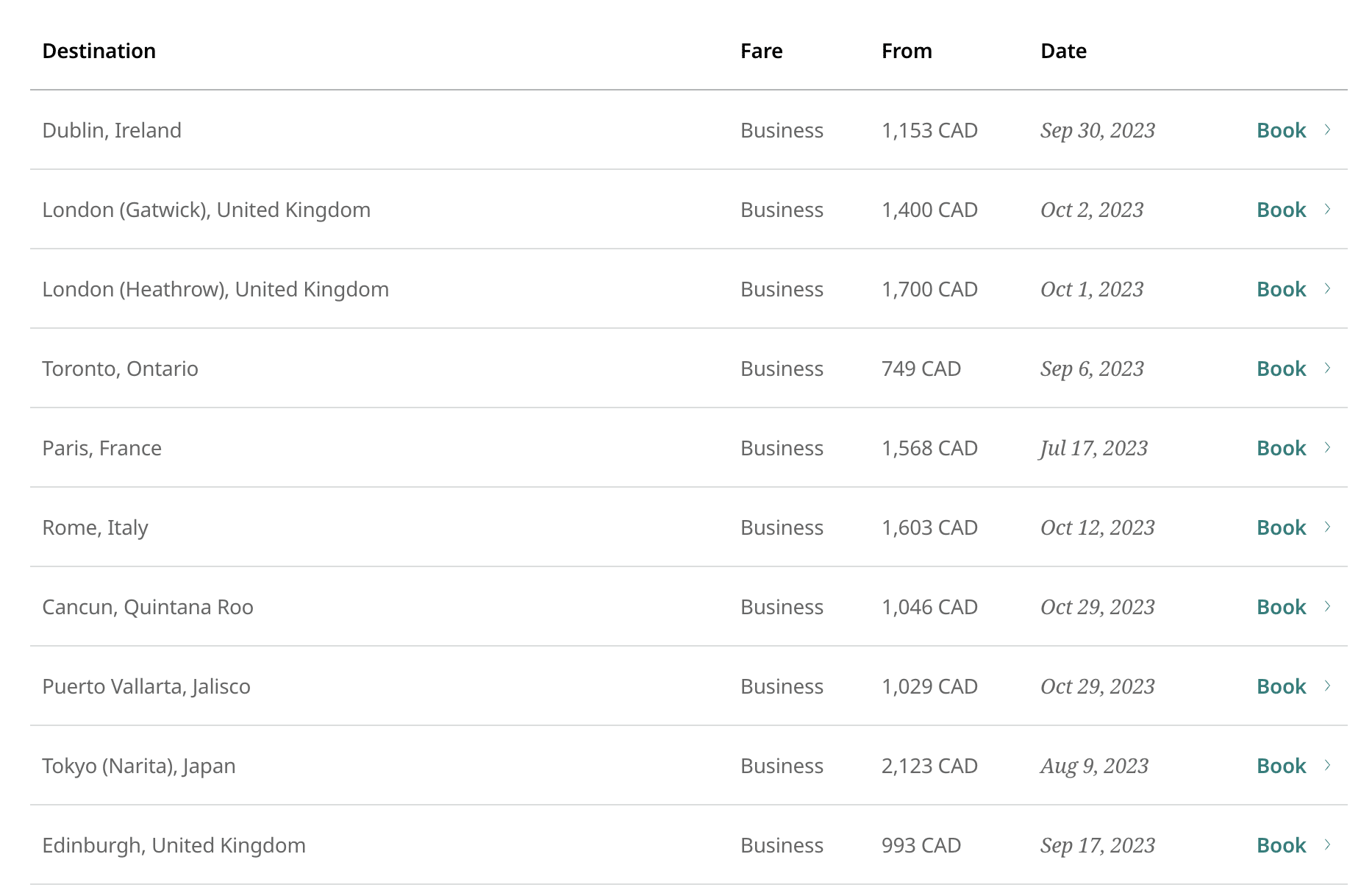 All of WestJet’s business class options fly out of or into Calgary International Airport (YYC), WestJet’s home base.