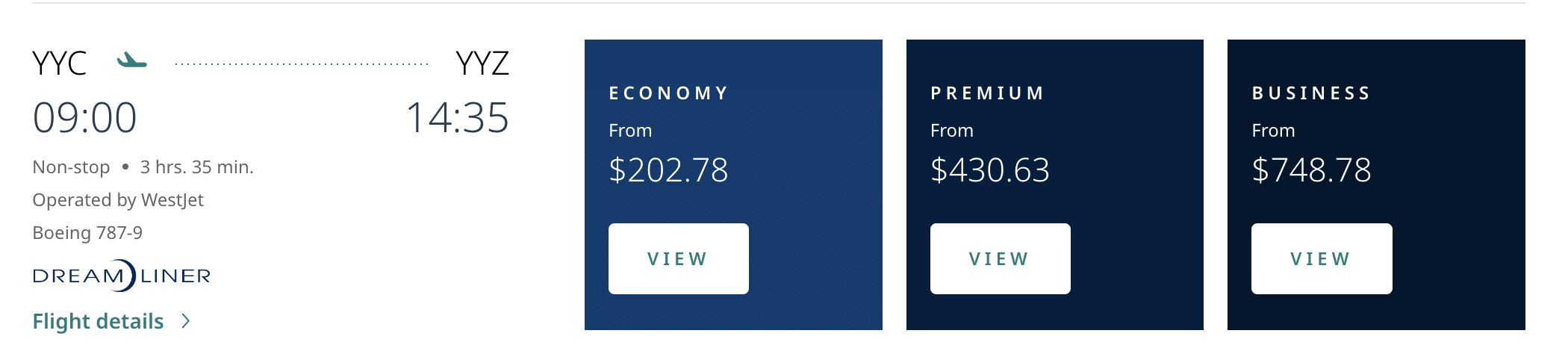 If you’re hoping to try out WestJet’s business class, and you’re not overly concerned with your destination, the cheapest way to experience the product is by booking on its shortest flight, which is between Calgary (YYC) and Toronto (YYZ).