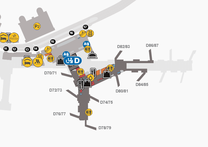 The International Terminal has two concourses, D and E, with gates also numbered according to their respective concourses.