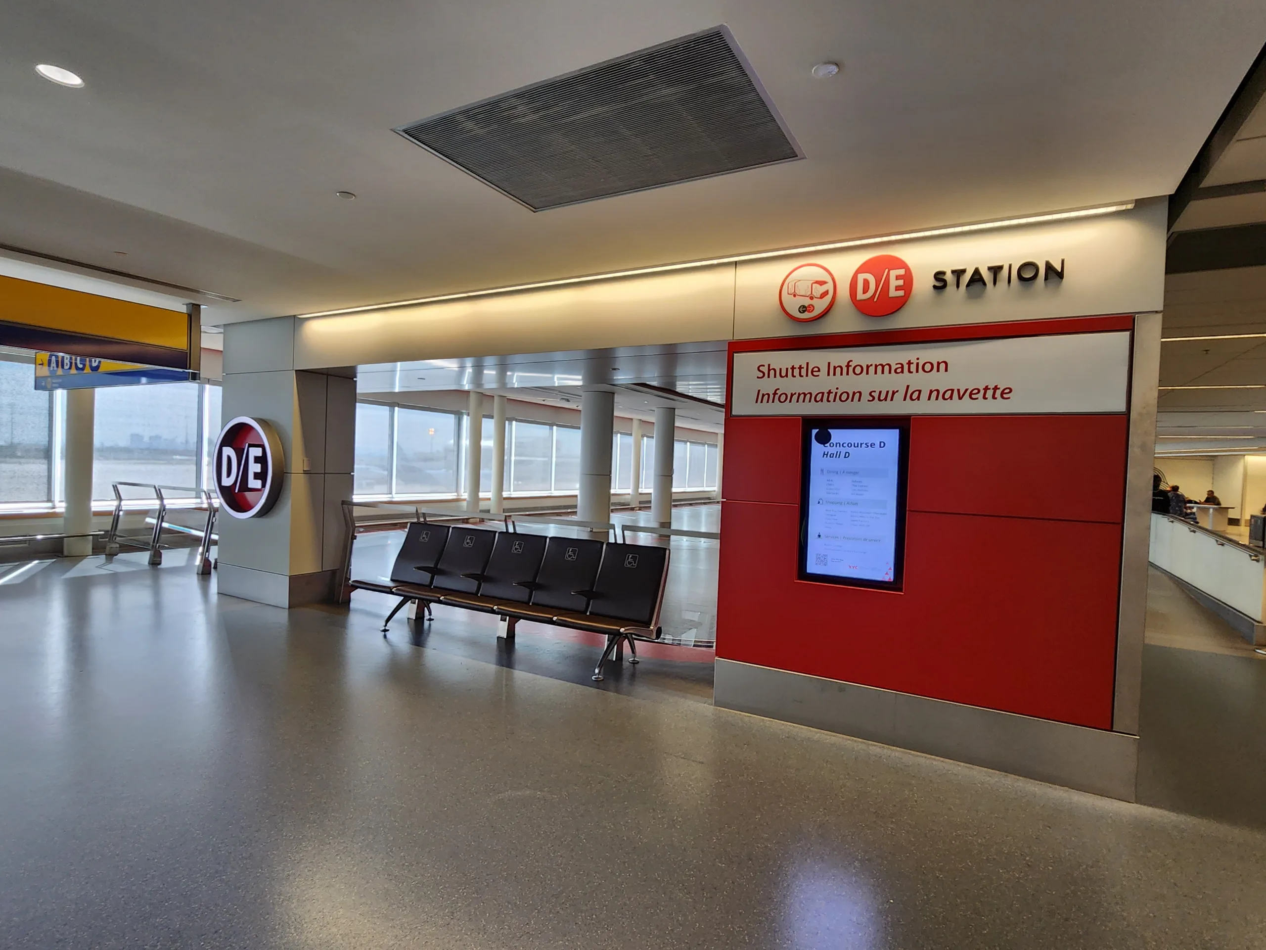 The landside mezzanine gives access to in-terminal parking and hotels, and it also houses restaurant chains, A&W and Tim Hortons.