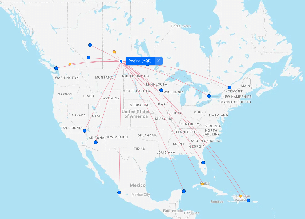 From Regina, you can take direct flights to destinations in Canada, the US, and Mexico, as well as to sun destinations such as Cuba and the Dominican Republic.
