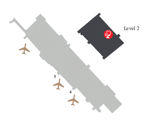 The Air Canada Maple Leaf Lounge is located on Level 2 in the departures area between Gates 4 and 5. The lounge is open daily from 5am to 6:30pm.