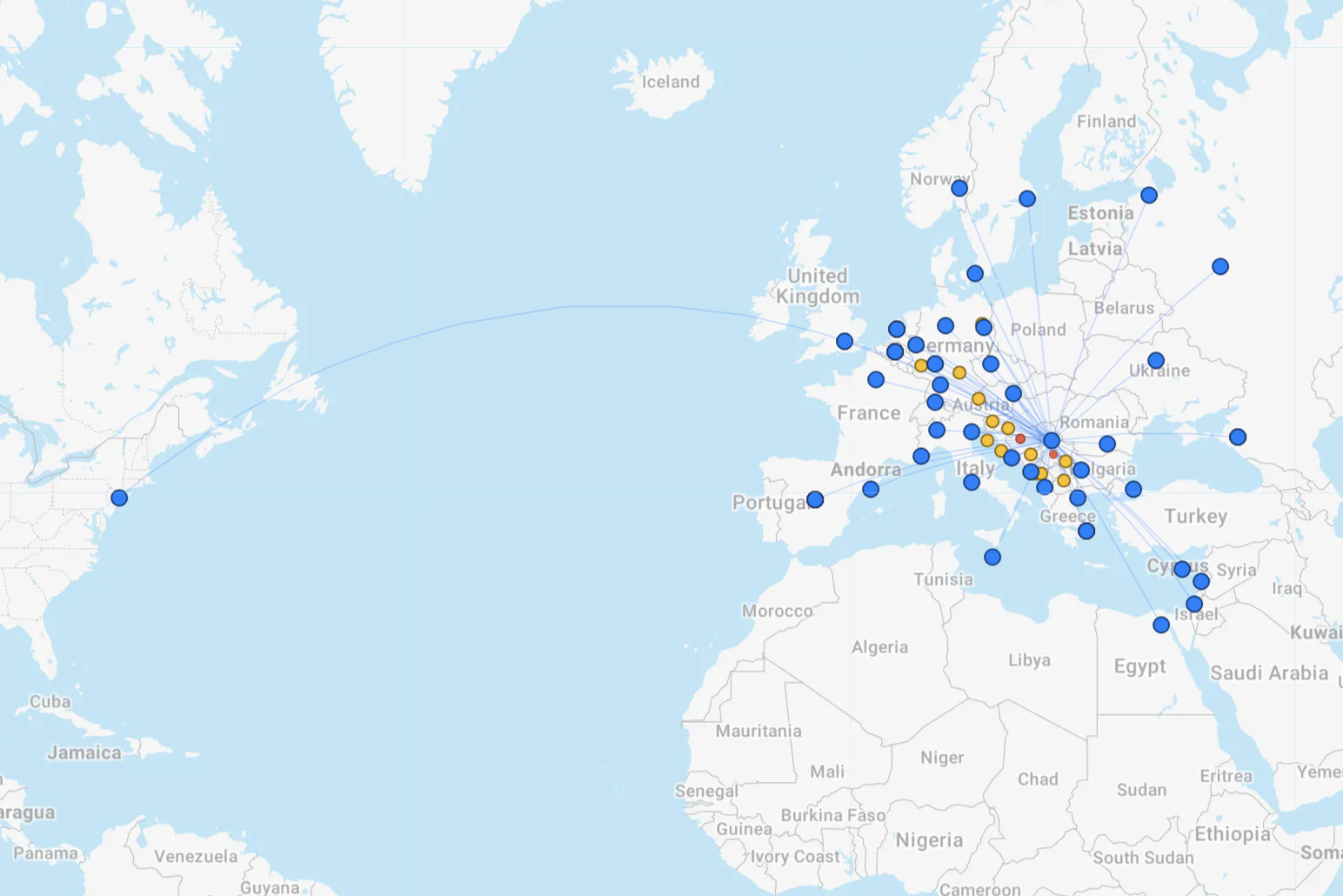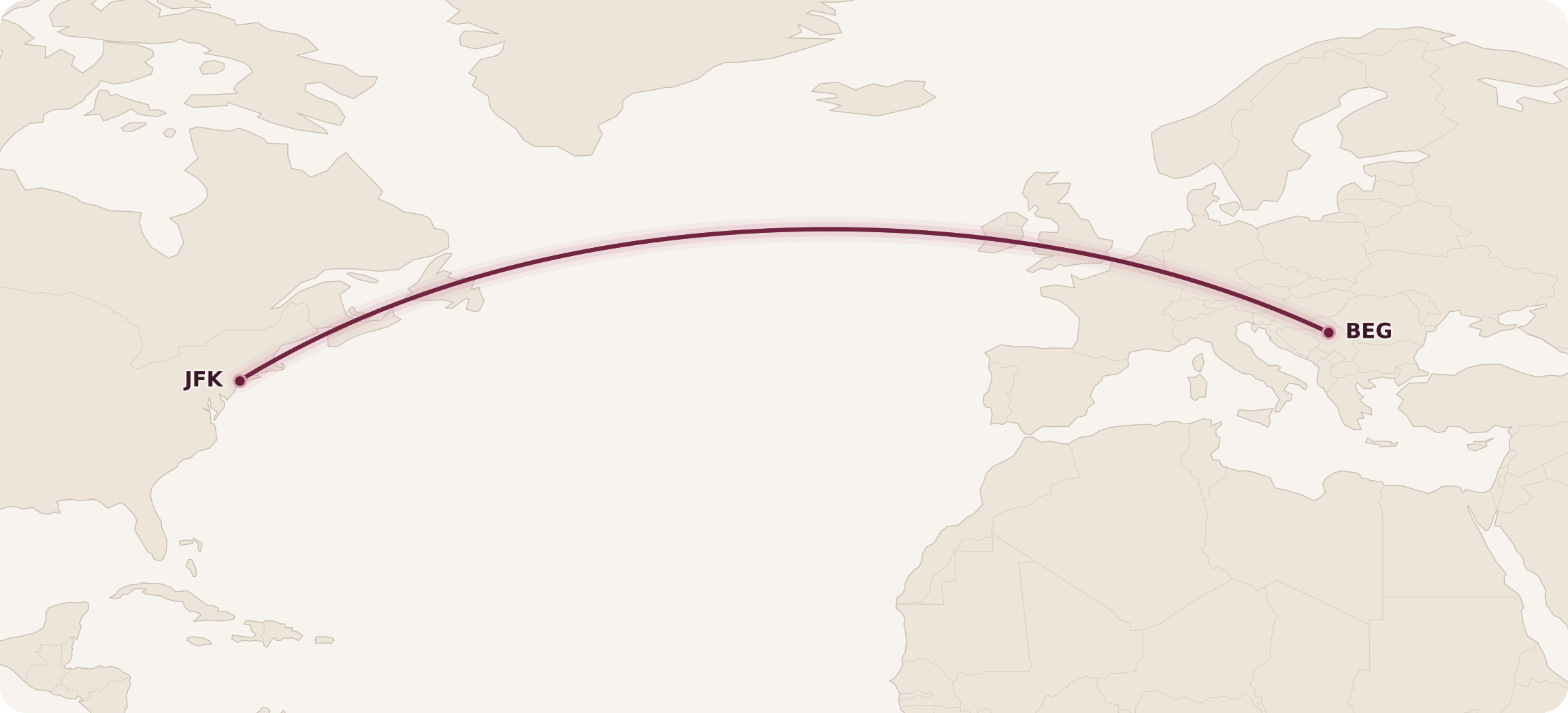 As you can see, Air Serbia runs mostly intra-European and Levant routes with one notable exception: their flagship route from Belgrade to New York JFK.