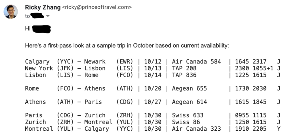 My turnaround time may be a little slow these days given the volume of requests, but rest assured that I’ll be able to present you with a valid itinerary to call Aeroplan and book before the August 31 deadline. This sweet spot has given me some of the best travel memories of my life, so I’m fully committed to helping as many people as possible experience the same thing.