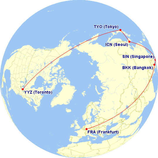 Read moreA journey such as Toronto (YYZ) – Tokyo (NRT/HND) – Seoul (ICN) – Singapore (SIN) – Bangkok (BKK) – Frankfurt (FRA), with stopovers in Tokyo and Singapore, has two one-way bounds: