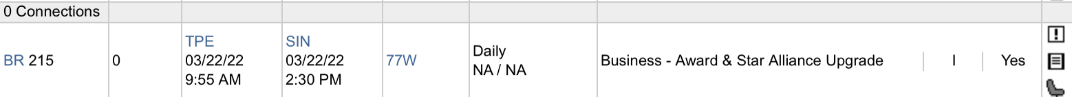 I’ll make Taipei a two-day stopover for an extra 5,000 Aeroplan points. Continuing onwards, Singapore Airlines awards remain offline for the time being (as the airline has restricted partner access to all of its award availability during the COVID-19 pandemic), so the segment from Taiwan to Singapore is BR212, again operated by EVA.