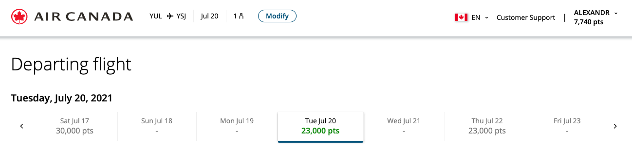 Due to this discrepancy, when booking Air Canada flights with Aeroplan, you must look on Aeroplan.