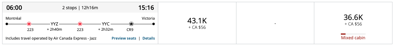 - Reveal the mixed cabin bar to avoid connecting itineraries which have the short segment in business and the long one in economy. The old Aeroplan search engine liked to display those, and they are a terrible deal… unless they’re not.