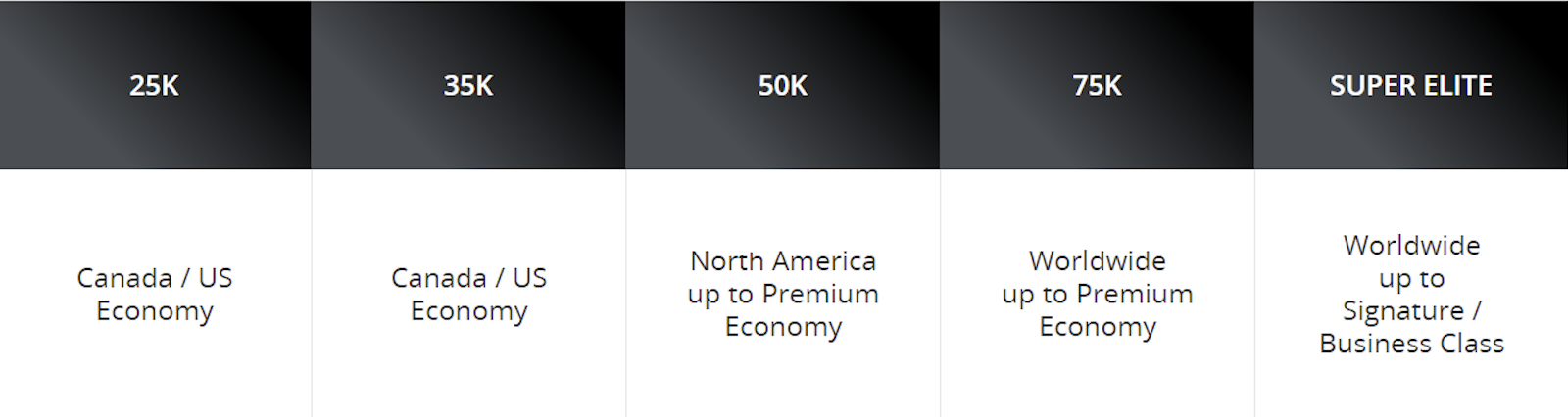 - A flat amount of vouchers: 1 for Aeroplan 35K, 2 for Aeroplan 50K, 3 for Aeroplan 75K, and 4 for Aeroplan Super Elite; or