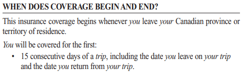 As you can see, travelling outside of your province or territory of residence is all that’s required for the emergency medical insurance to kick in, and there’s no requirement for the trip’s costs to be charged to the card itself.
