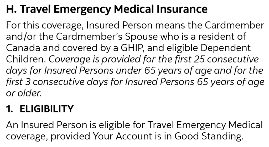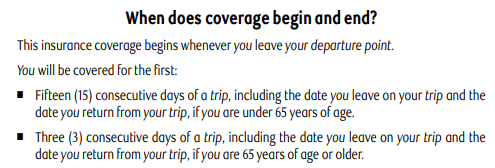 And the Scotiabank Passport™ Visa Infinite* Card’s benefits booklet states that it offers 25 days of coverage if under 65, and three days if 65 or older.