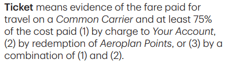 As you can see, the insurance benefits on these cards will apply no matter whether you charged the full fare to the card, redeemed Aeroplan points for the ticket and charged the taxes and fees to your credit card, or redeemed a hybrid amount of Aeroplan points and cash using the Points + Cash feature.