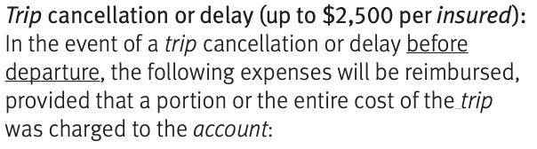 For example, here’s what the TD® Aeroplan® Visa Infinite* Card’s insurance package has to say about ticket eligibility for flight delay, delayed and lost baggage, trip cancellation and trip interruption, and common carrier accidents: