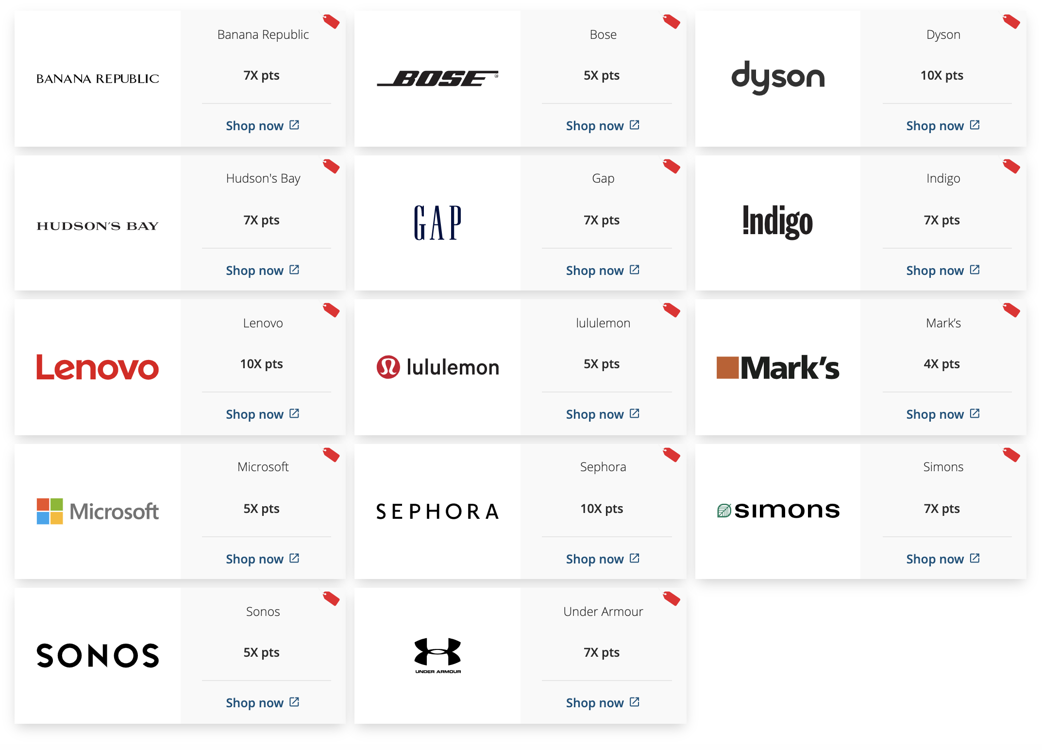 Dyson, Lenovo, Sephora, and Indochino are the four retailers offering 10x points, with the remaining retailers varying between 1x and 7x elevated returns. Disappointingly, perennial favourite Apple is only at 1x this time around.