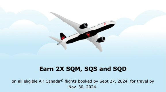 To earn the double SQM, SQS, and SQD, you must have booked an eligible cash fare for round-trip flights or two one-way flights to eligible destinations in Canada, the United States, the Caribbean, and Mexico that take place between September 25, 2024 and November 30, 2024.