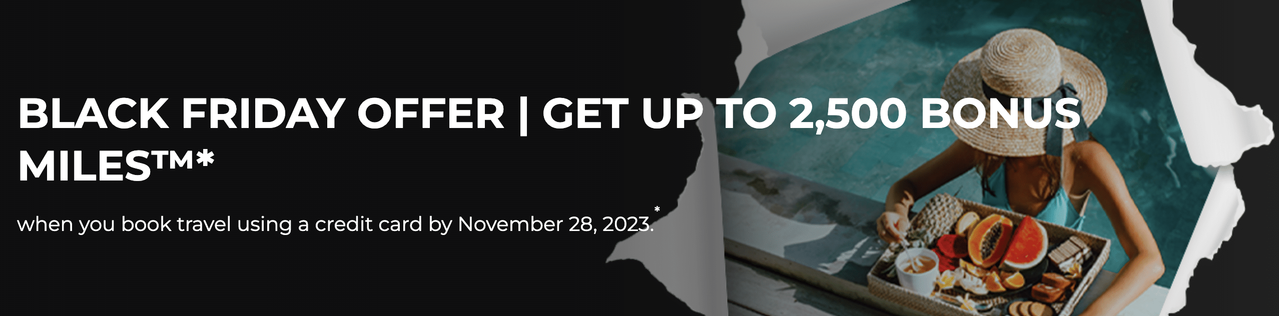 As per the terms and conditions of the offer, you’ll need to book using a credit card between November 22 and November 28, 2023; however, you can use any credit card.
