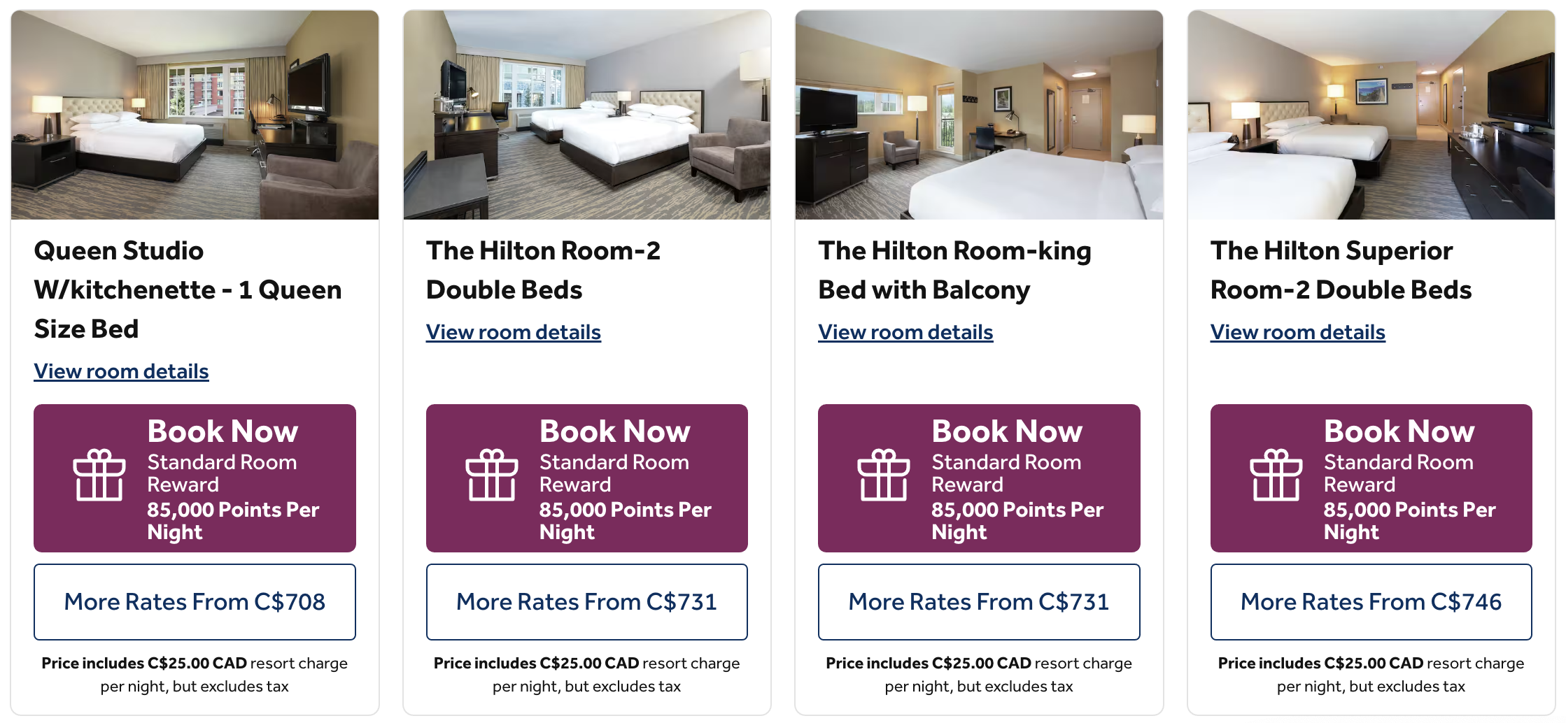 It’s not uncommon to find room prices at that property for $700 or more during the busy winter season, which would work out to around 1.24 cents per Membership Rewards point, or 0.82 cents per Hilton Honors point.